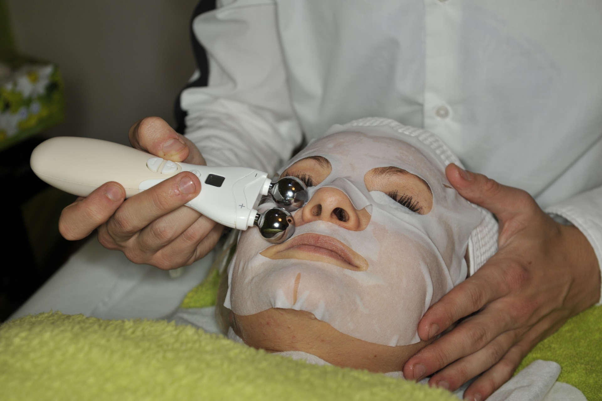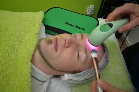 Galvanizační masáž séra a masky na pleti s foto-terapii