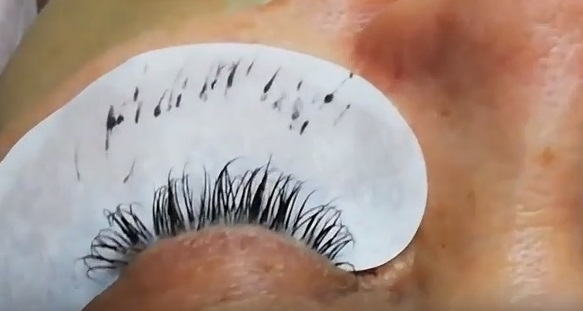 celá aplikace se provádí v leže na lehátku a oči jsou zavřené, spodní víčko je překryté ochrannými polštářky,